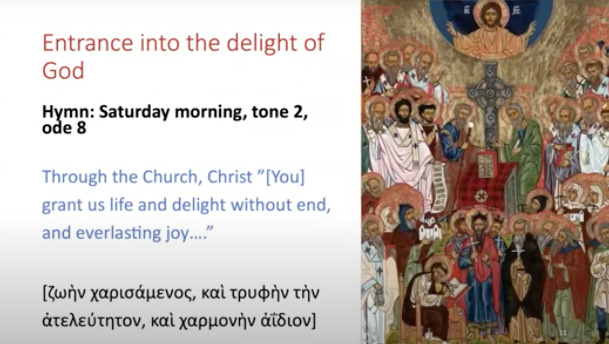 在另外一个赞美诗周六上午的第二首:通过教会,基督赐予我们生命和无穷的喜乐。
