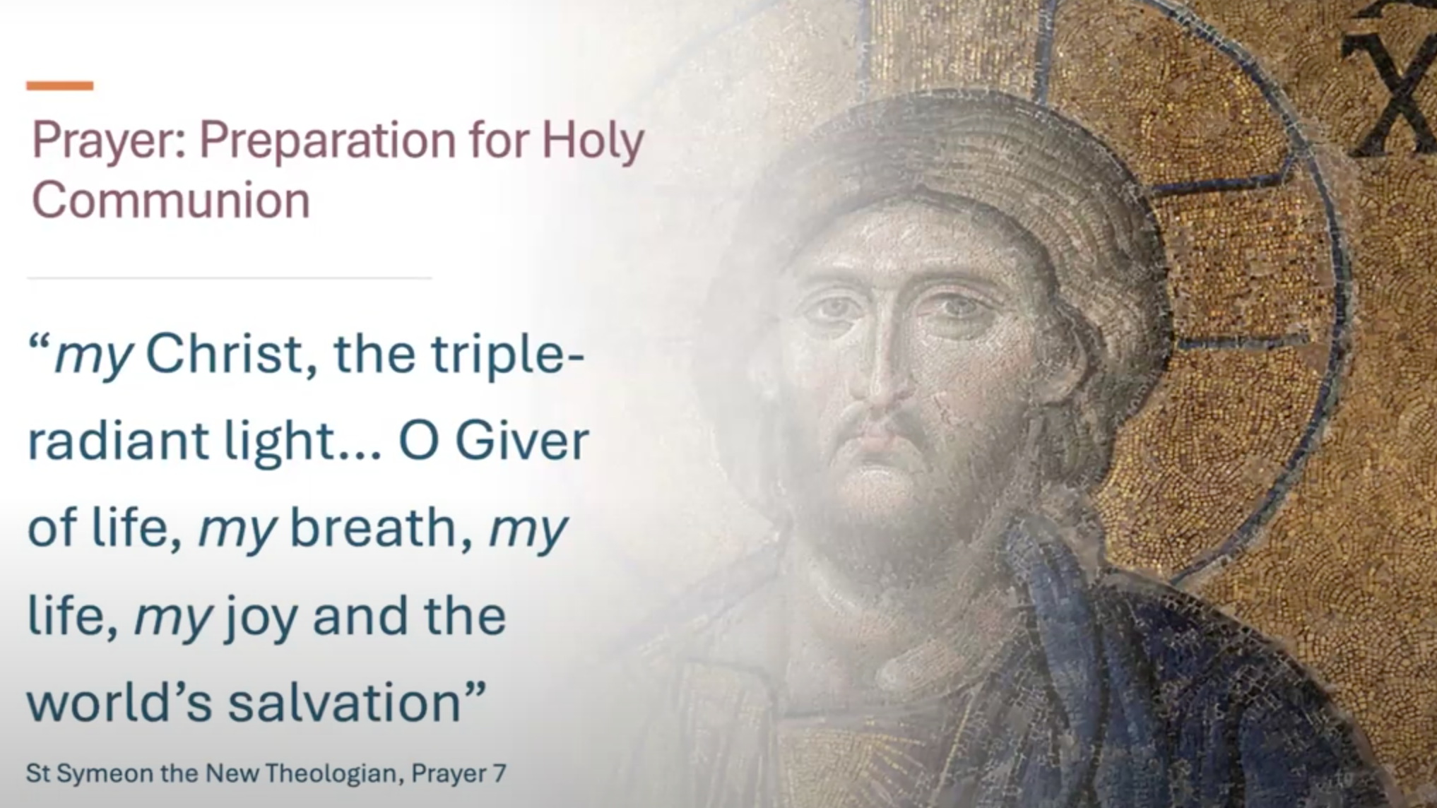 So we are called to really focus our attention On the only one thing needful. And in a prayer that Orthodox Christians Read in preparation for Holy Communion. They pray in a very personal and intimate manner. Reading the words of Saint Simeon the New Theologian Orthodox Christians pray 7. “My Christ The triple radiant light, O giver of life My breath My life, My joy and the world’s salvation. Notice the intimacy with which Saint Simeon Refers to Jesus Christ his Savior.